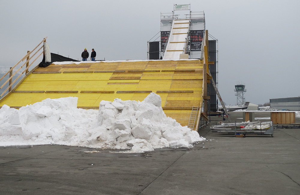 Mit dem Flugplatz Buochs hat der hill jam 2013 einen neuen Standort gefunden. Der Flugplatz bietet optimale Bedingungen zur Austragung eines Big Air Contest. Viele Parkplätze, genügend Umschwung und asphaltiertes, ebenes Gelände bieten sehr gute Voraussetzungen für die Errichtung der Infrastuktur. Mit schwerem Gerät und rund 200 Helfern wurde innert weniger Tage die komplette Infrastrukur aus dem Boden gestampft.