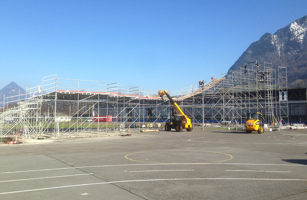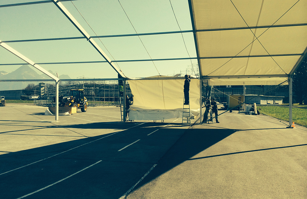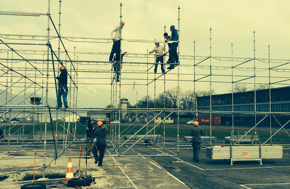 Bei strahlendem Sonnenschein wurde während rund 14 Tagen das Areal für den hill jam 6 aufgestellt. Nicht weniger als 250 Helfer beteiligten sich am Auf- und Abbau sowie dem Anlass selber. Innert weniger Tage wurde die Infrastrukur dann schliesslich auch wieder abgebaut.