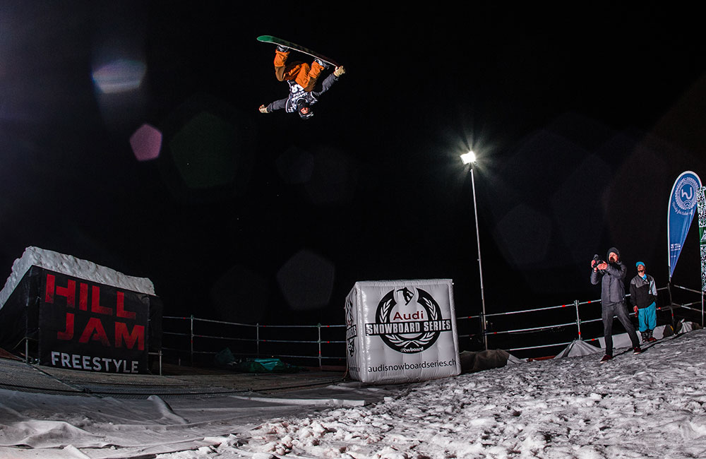 Am hill jam 7 starteten 45 Freeskier und 27 Snowboarder aus der Schweiz, England, Holland, Deutschland und sogar den USA. Die Teilnehmer zeigten Luftakrobatik vom Feinsten und begeisterten die Zuschauer. Gewonnen hat die Kategorie Freeski – Swiss Freeski Tour – Mees Van Lierop (NED, Bergeijk), vor Colin Wili (SUI), und Clint Christen (USA). Bei den Snowboarden – Audi Snowboard Series – entschied dieses Jahr Lou Staub (SUI) den Contest für sich. Vor dem zweitplatzierten Silvan Müller (SUI) und auf dem dritten Rang: Rico Wittwer (SUI).